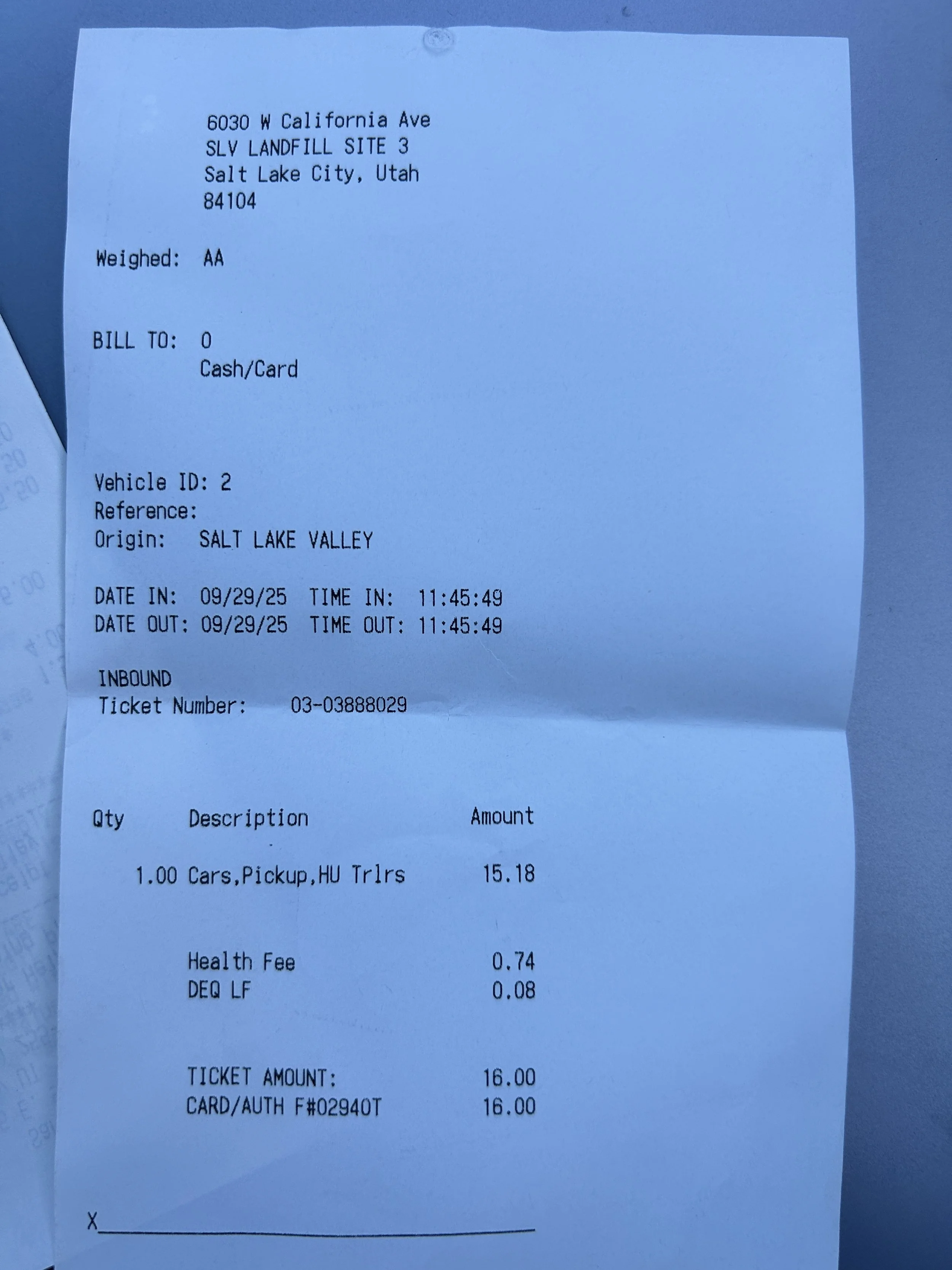 *Driving Time: 0h at $30/h = $0