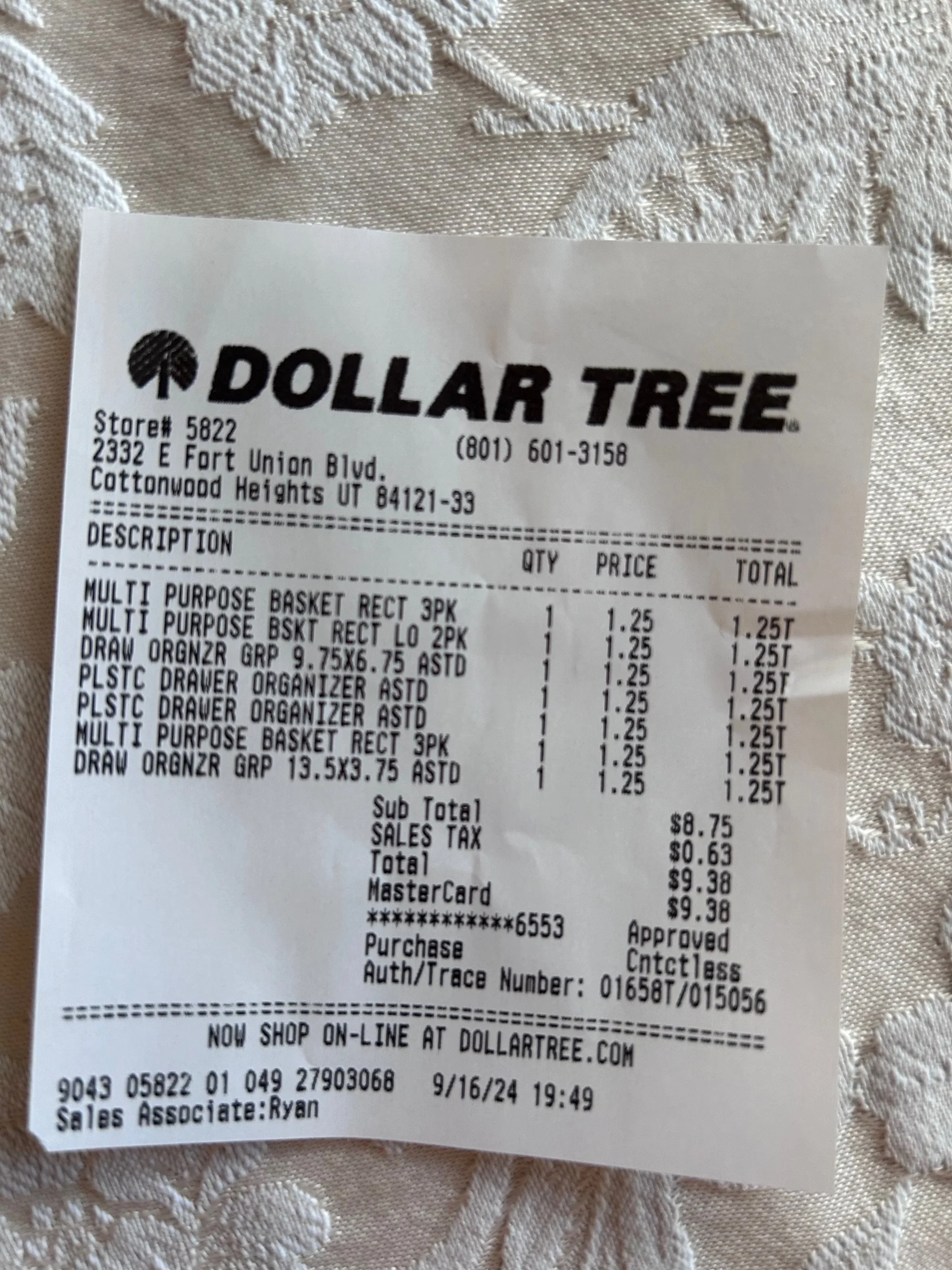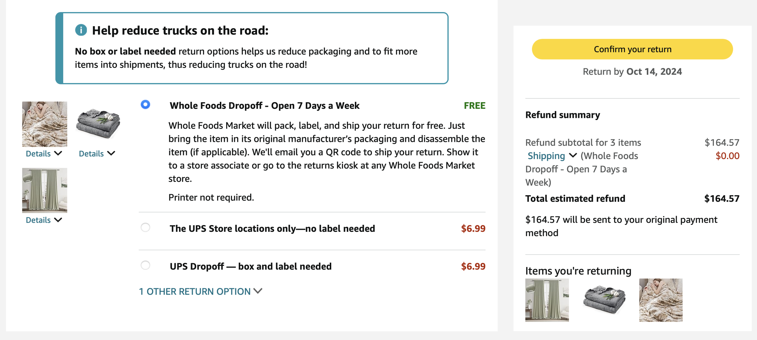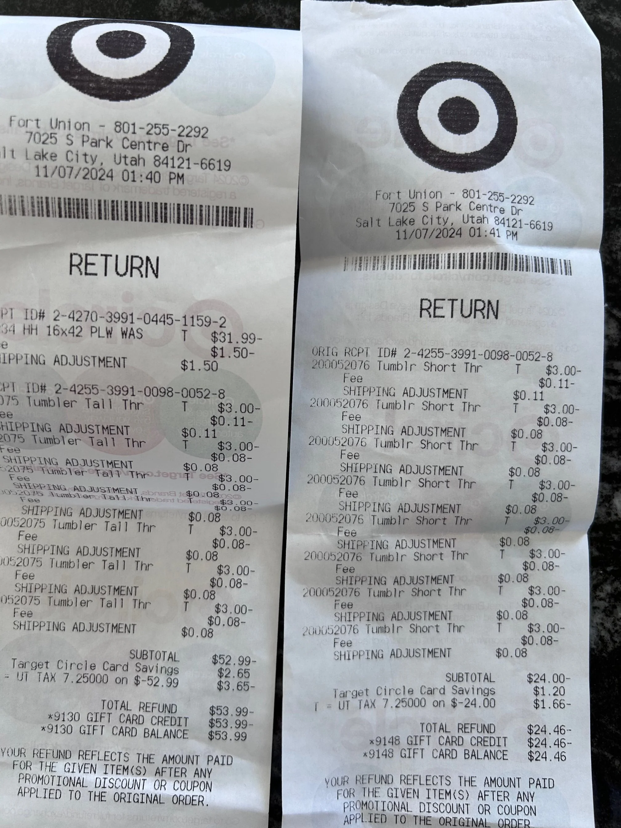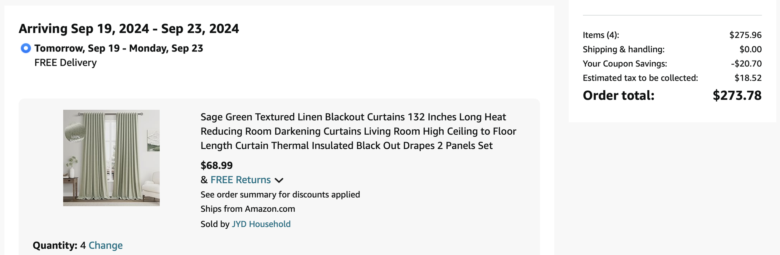 *Purchases WITH DESIGNER’S FUNDS (screenshots below)—including sheets, tea kettle, security bar for patio sliding door, place settings, wine goblets, roller shades for patio doors, and bath mats = $606.94 - (minus returns) $110.61 = $496.33