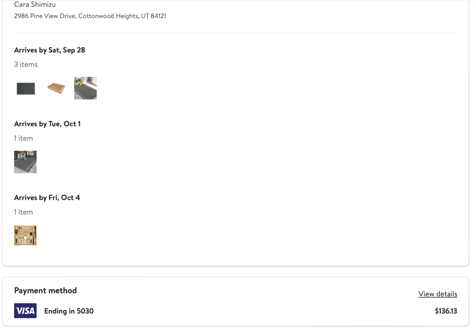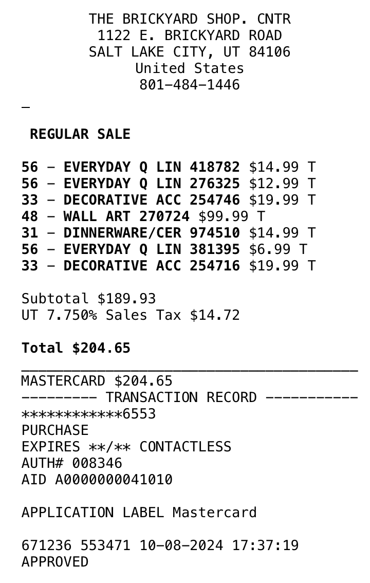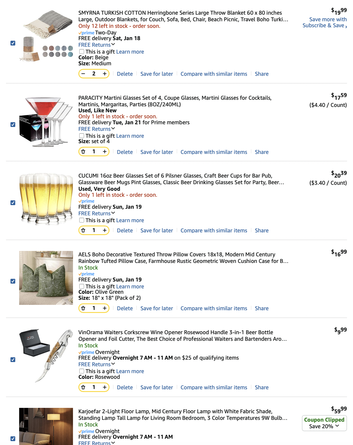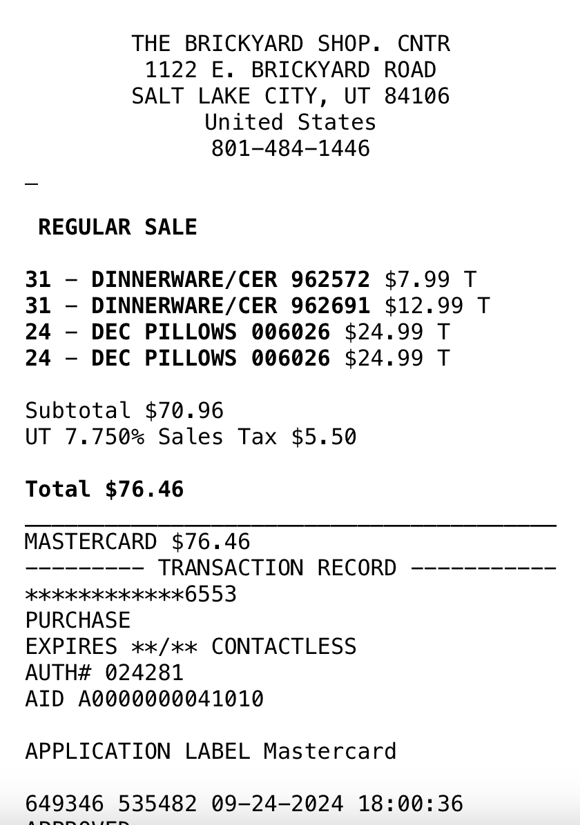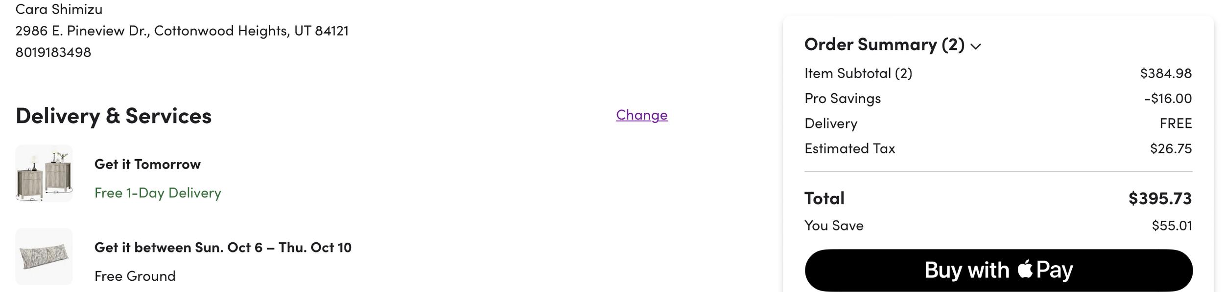 *Purchases (screenshots below)—lamps, art, dining table, pillows = $1497.54