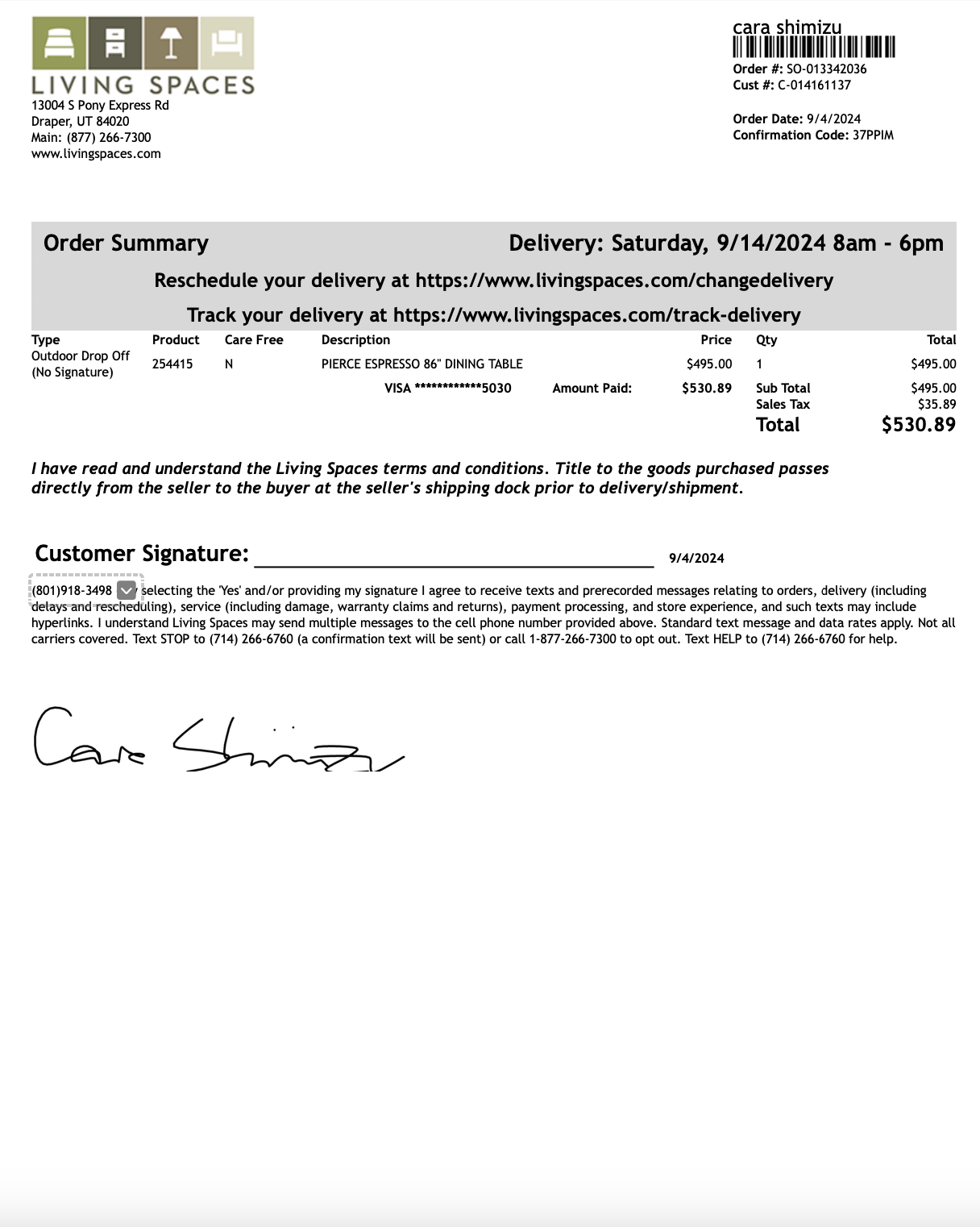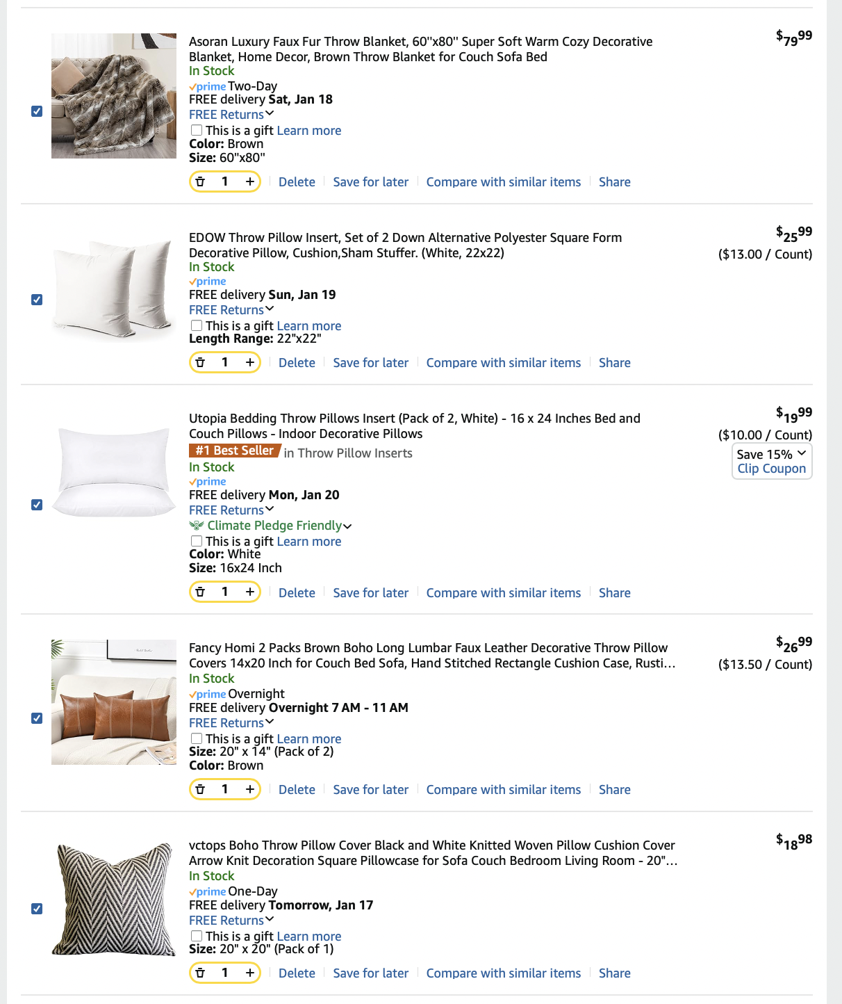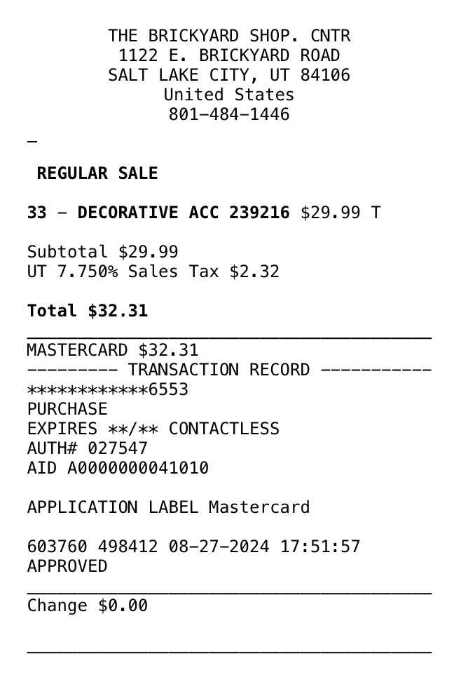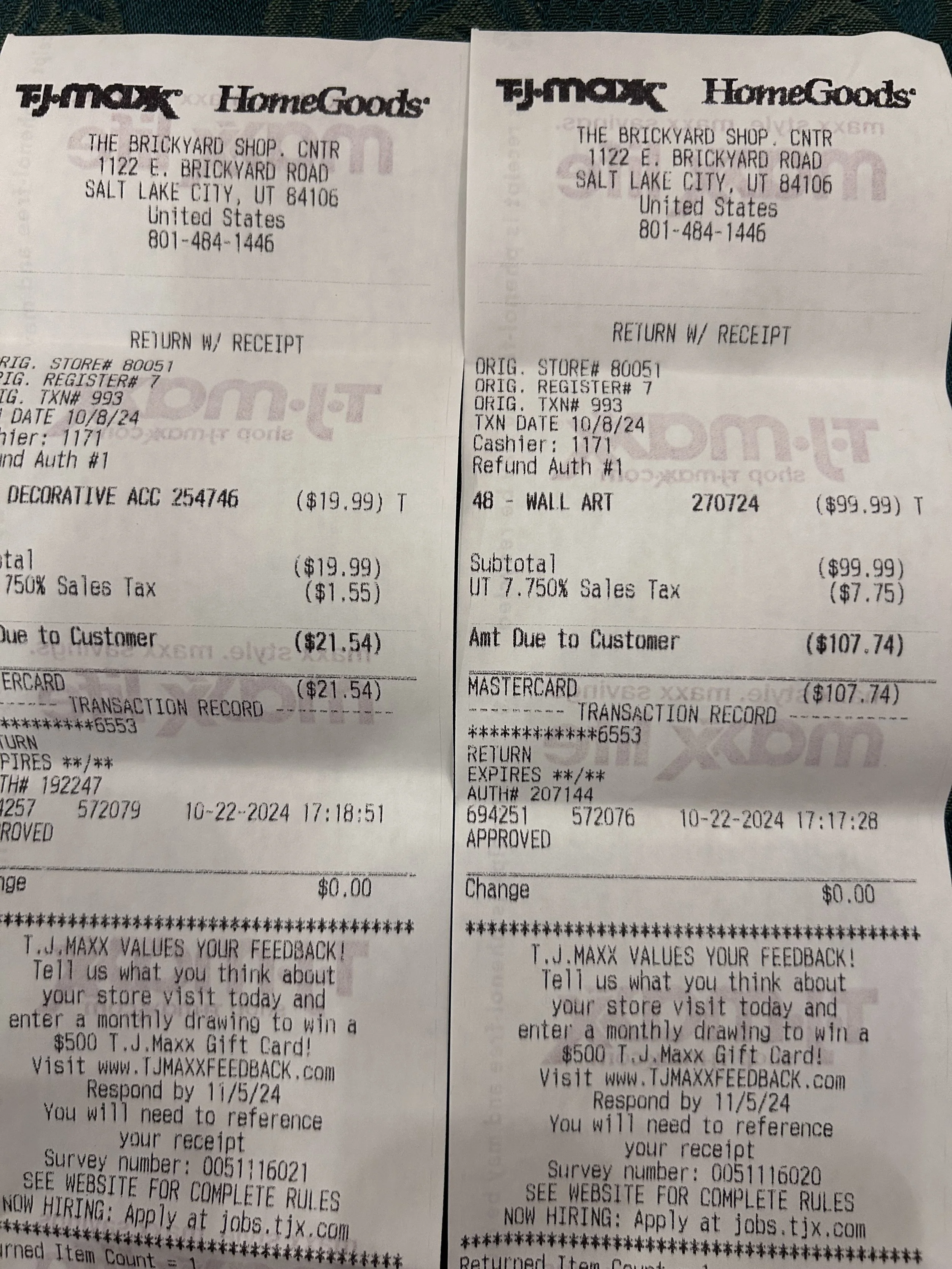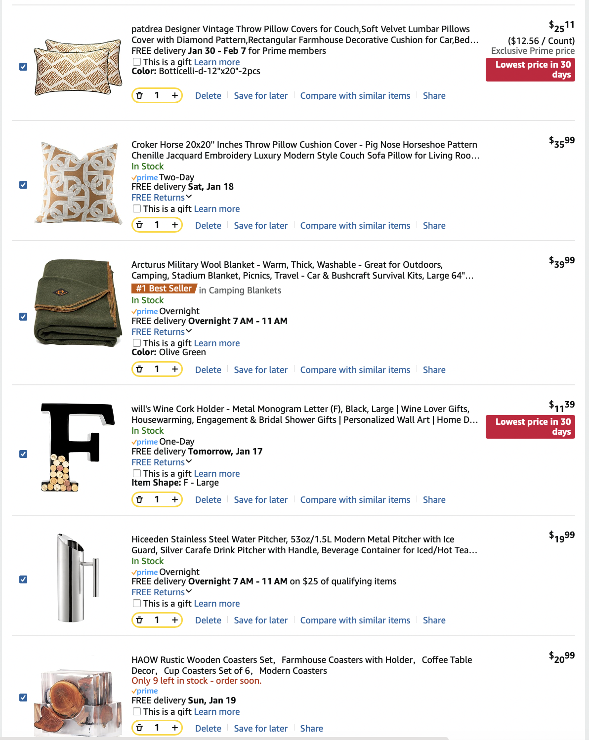 *Purchases (screenshots below)—lamps, art, dining table, pillows = $1497.54
