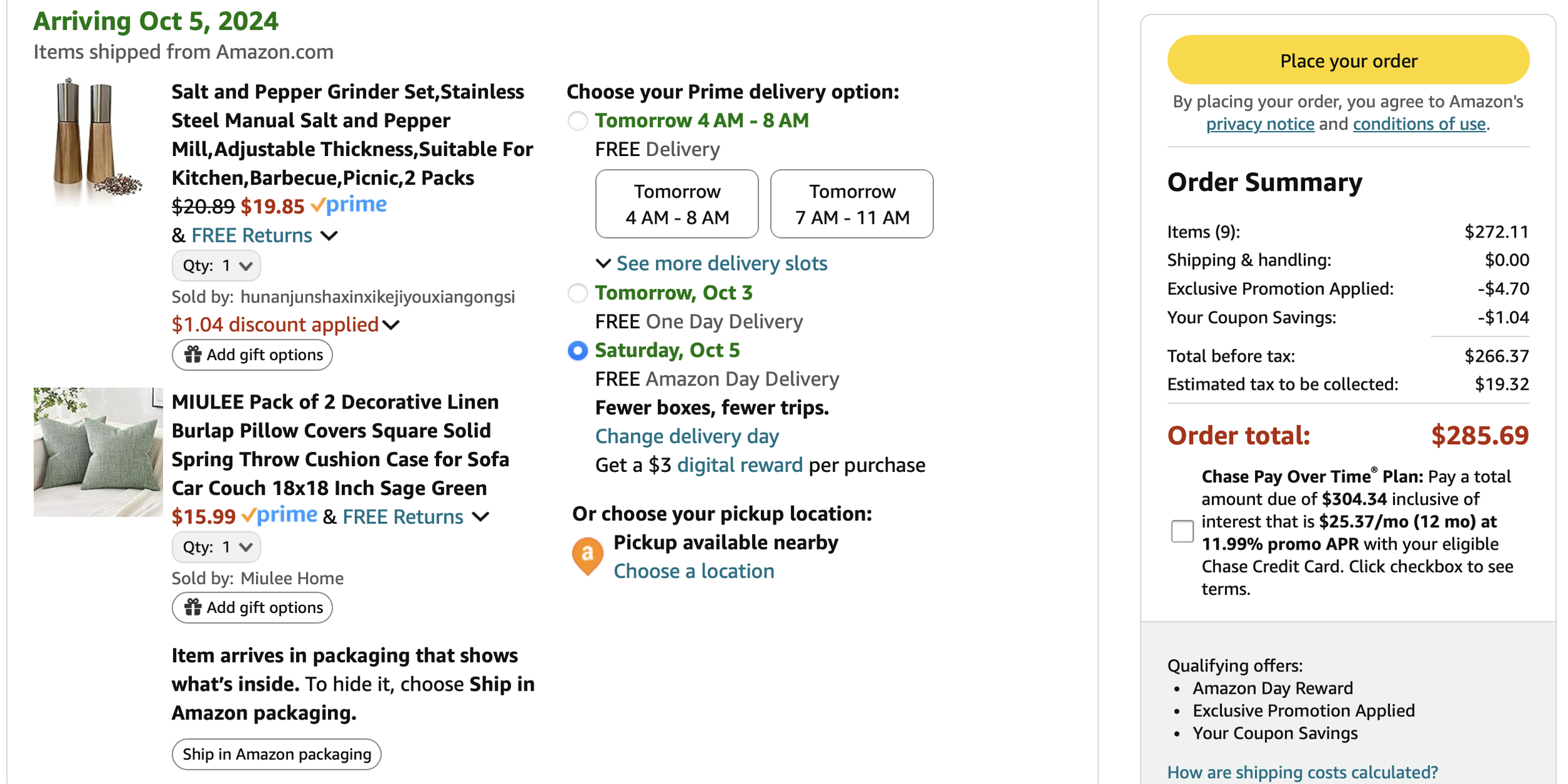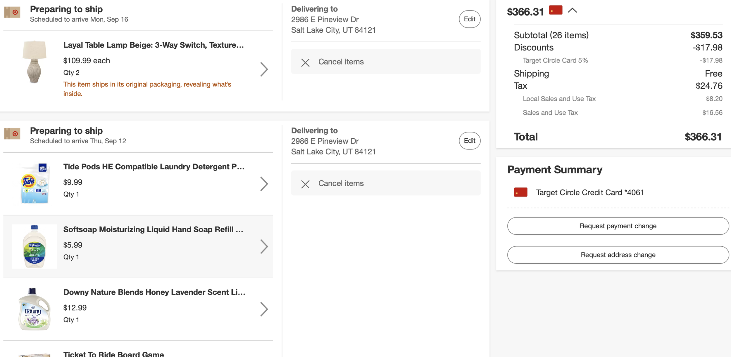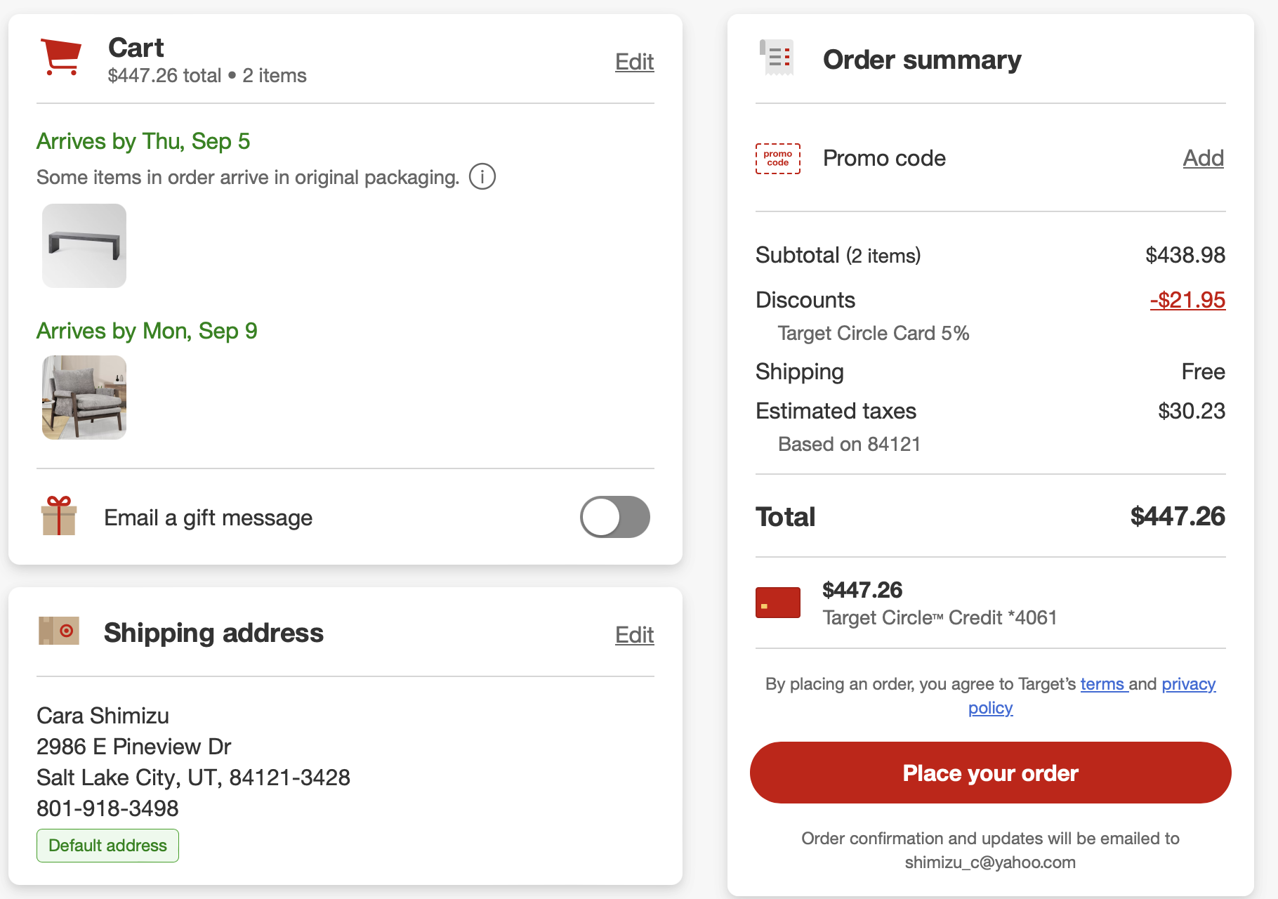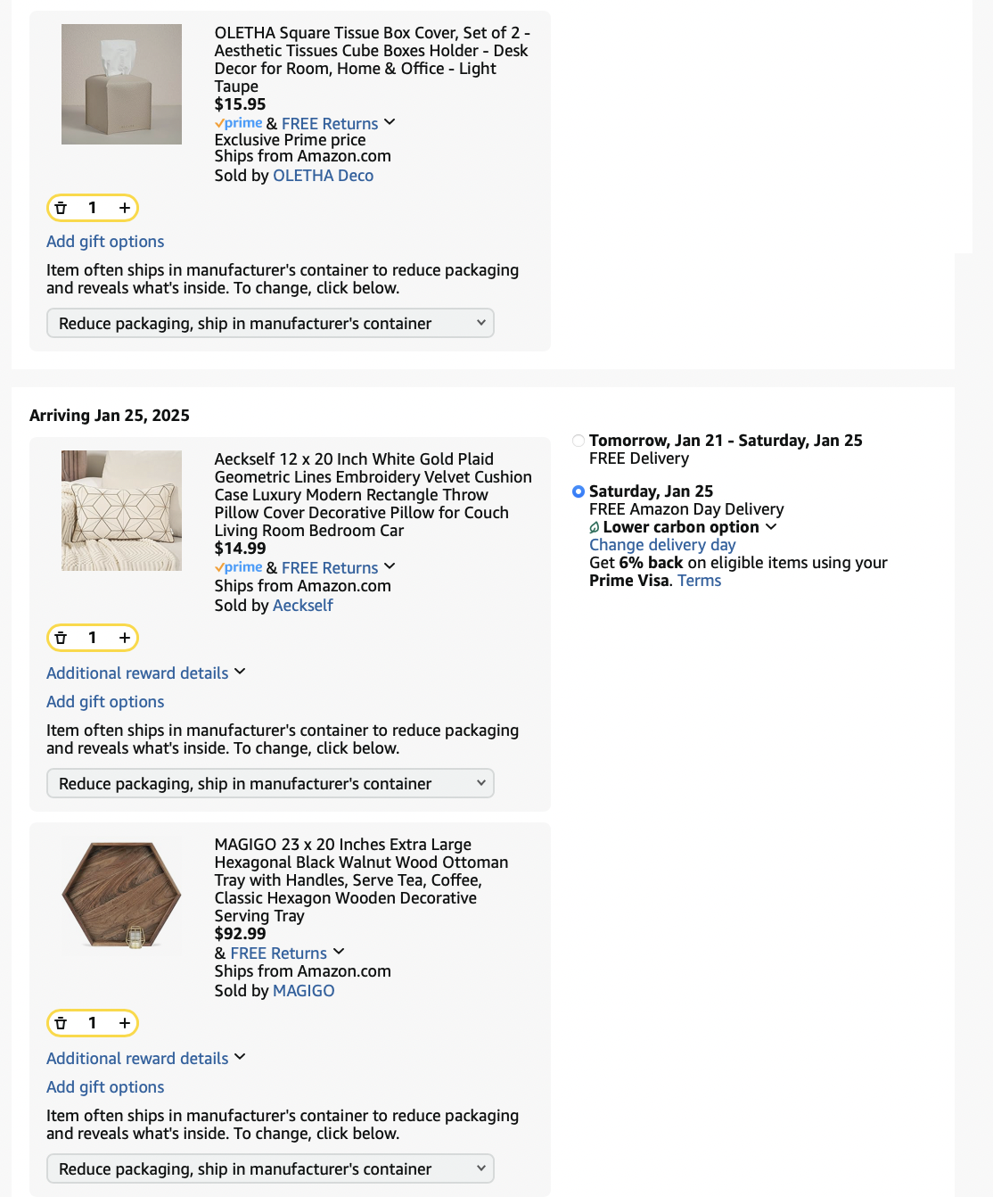 *Purchases (screenshots below)—lamps, art, dining table, pillows = $1497.54