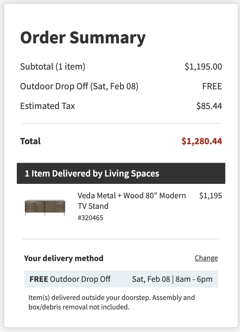 *Purchases WITH DESIGNER’S FUNDS (screenshots below)—including rug, TV console, bar accessories, decorative pillows, TV mount, lamp = $449.24